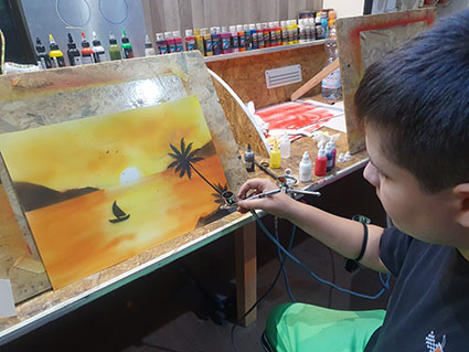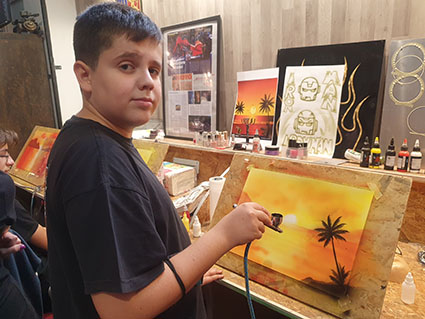 Una domenica davvero speciale per questi ragazzi che senza mai aver ne’ visto nè tantomeno adoperato un aerografo, si son portati a casa un bel disegnino e tanto entusiasmo e soddisfazione a tal punto che anche genitopri e parenti si son cimentati!
