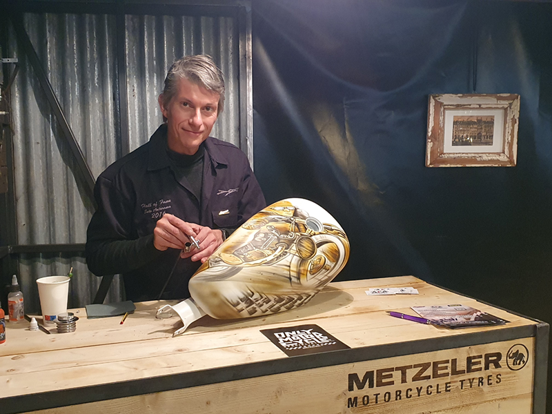 E’ stato realizzato anche un “Live Custom Painting“, per la prima tappa di “Metzeler Custom Tour“, ed ha visto coinvolto Lorenzo “Dox” Dossena che ha realizzato un serbatoio completamente aerografato.