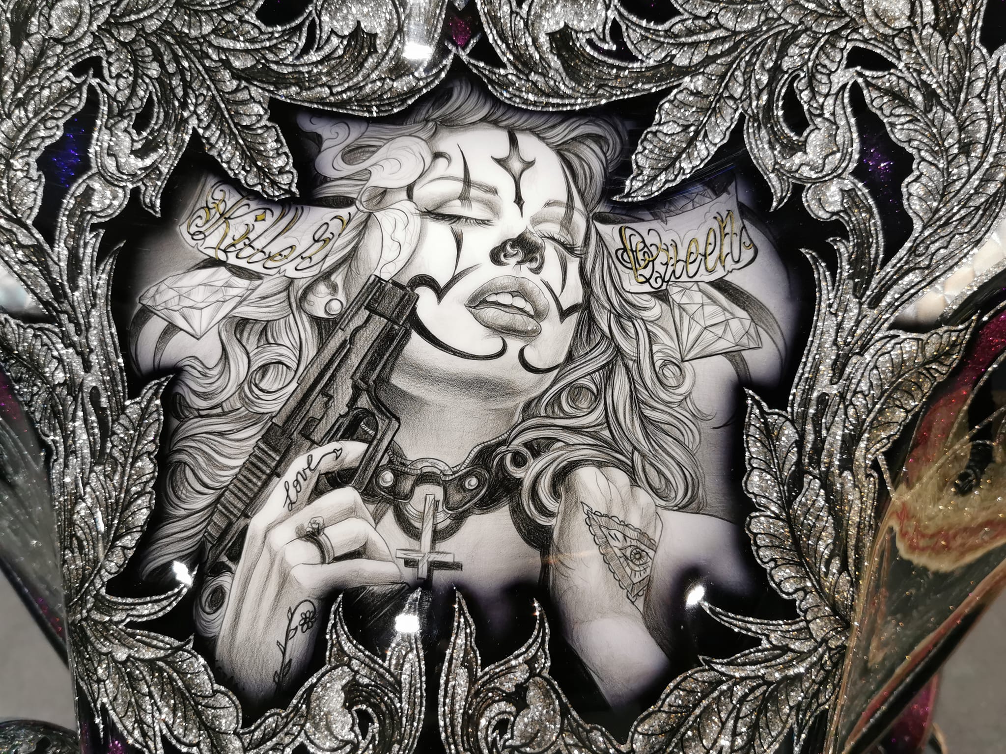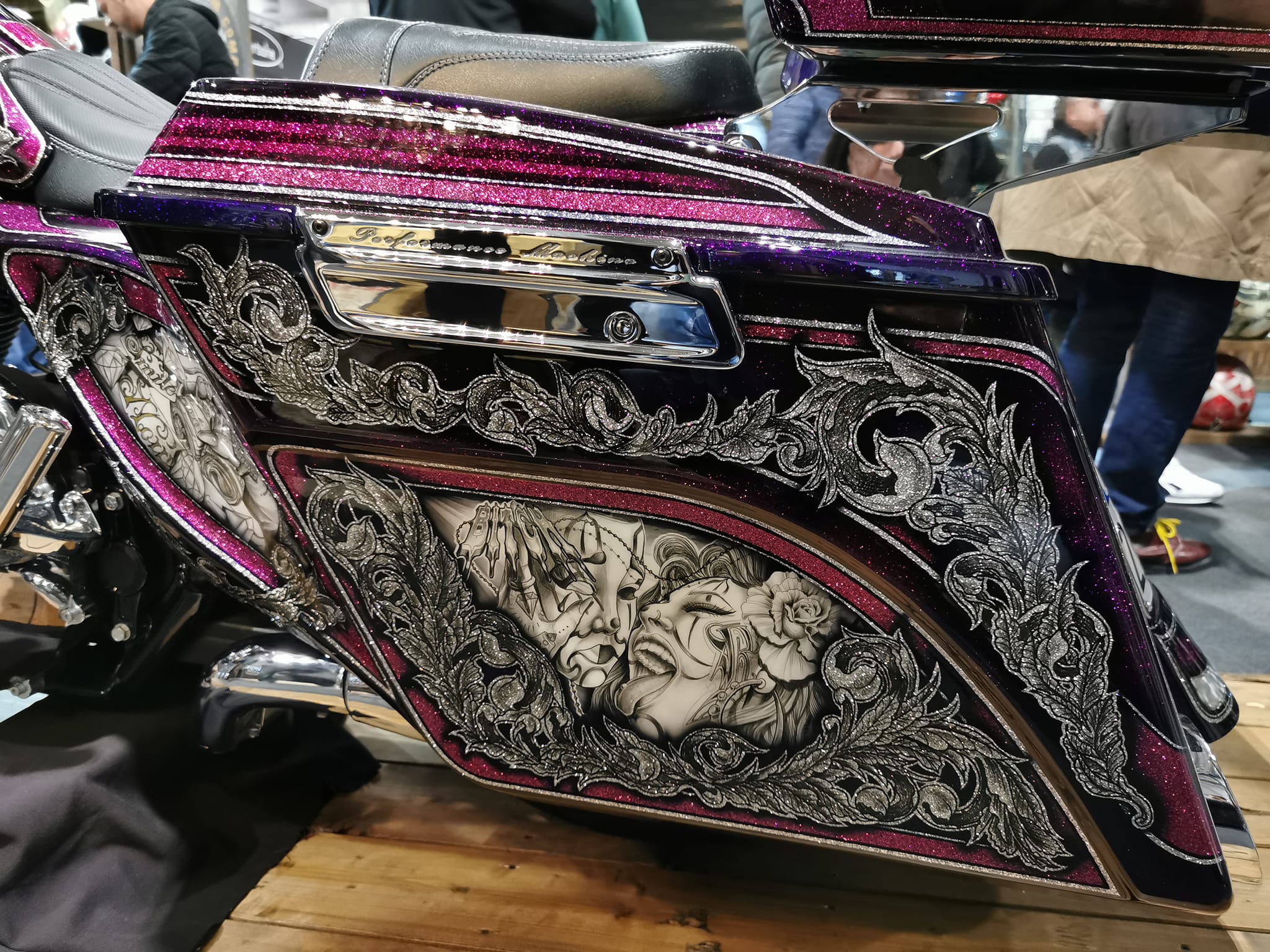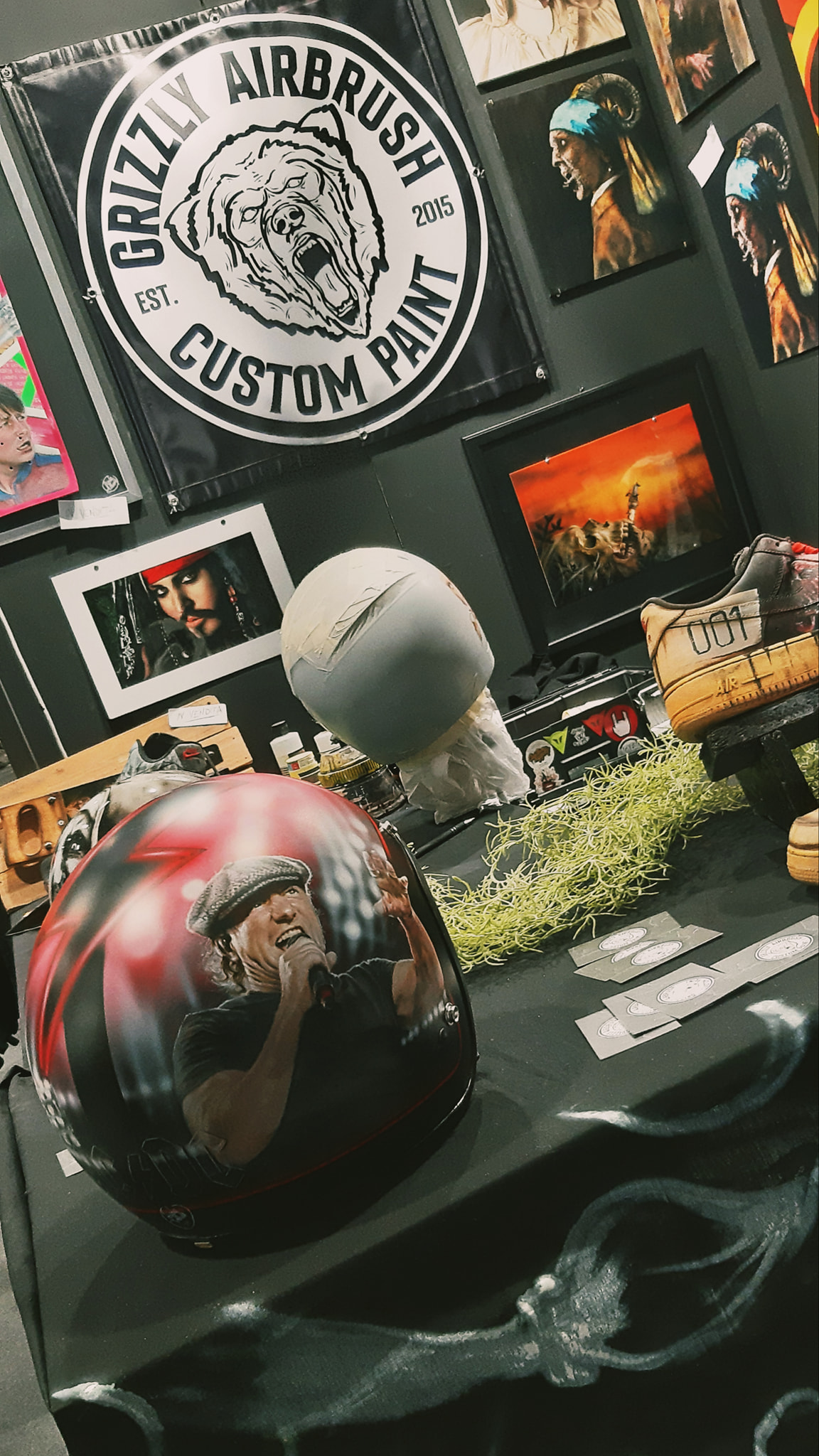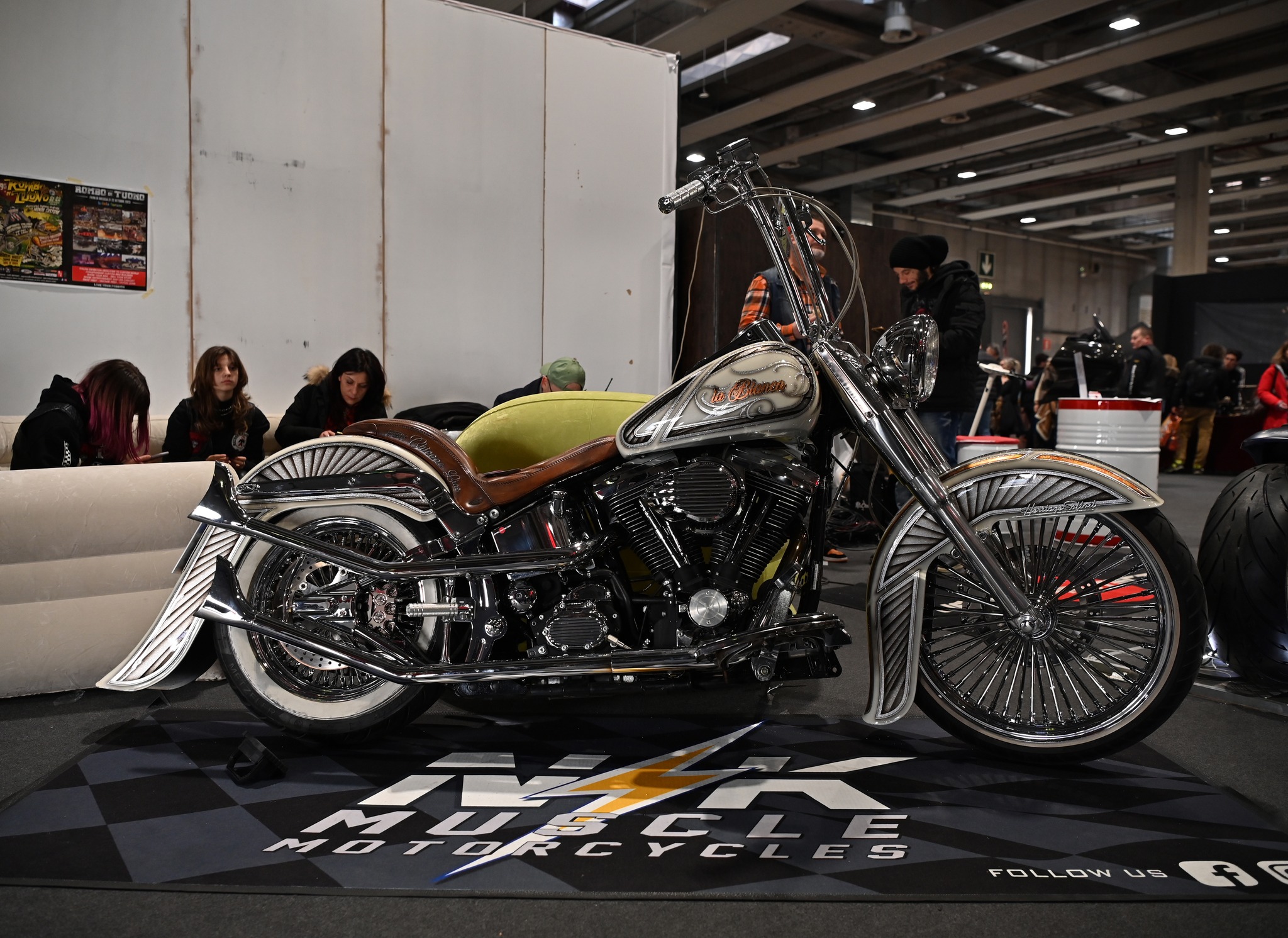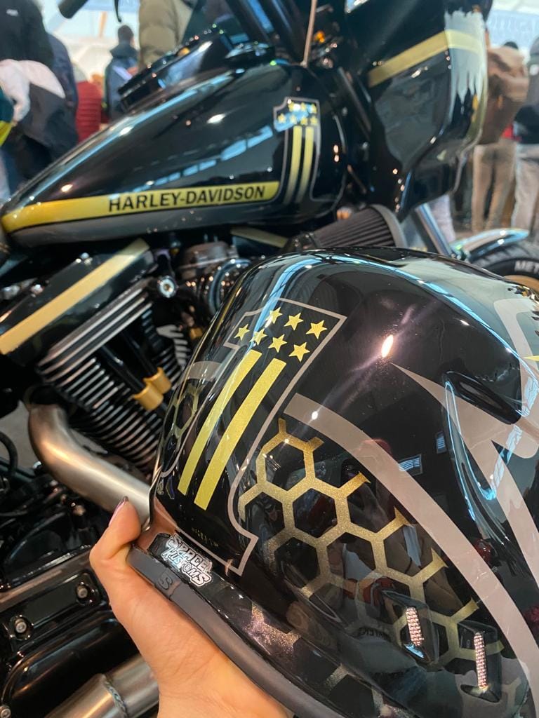 Inoltre, il Tutor Aka : Davide Salvadori “Grizzly Airbrush” ha realizzato un fantastico quadro a quattro mani, con l’Artista Internazionale : Darren McKeag ed ha realizzato le divise delle ragazze del Motor Bike Expo 2023.