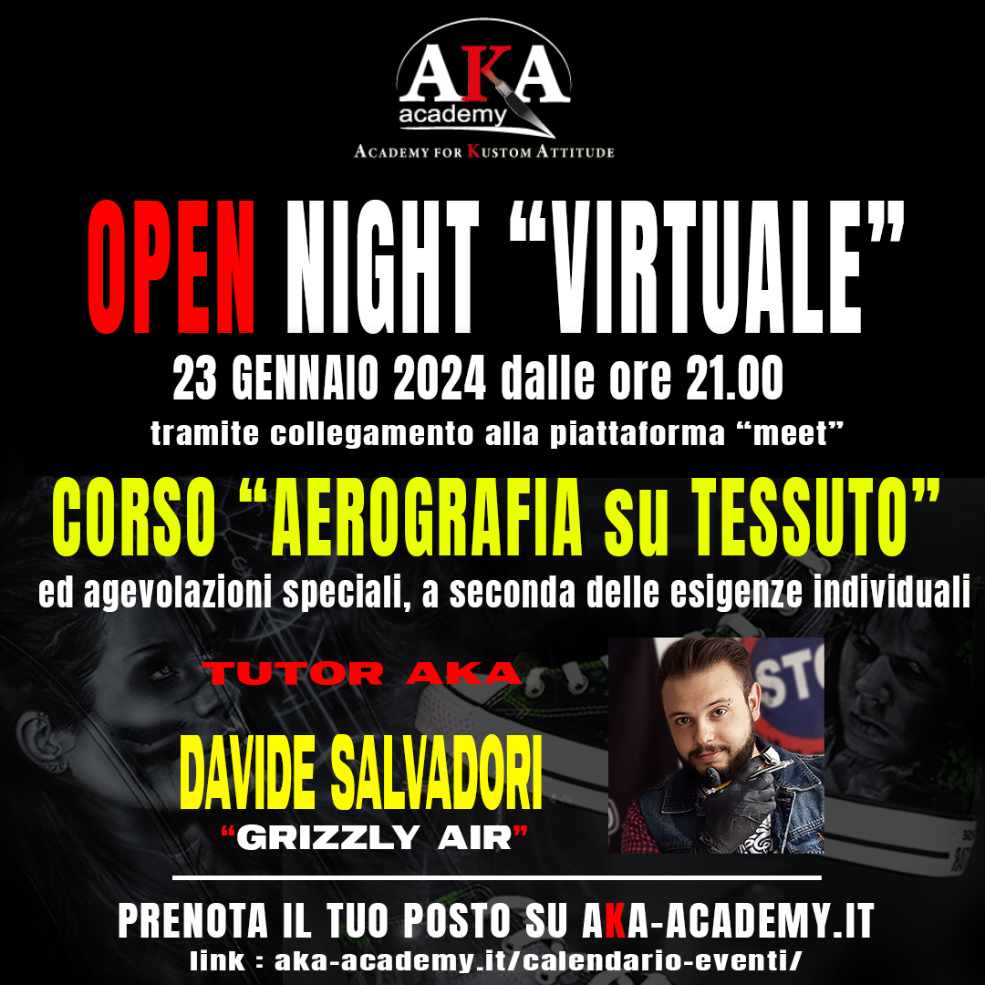 Aka Academy organizza un incontro “on line” per far conoscere il Corso di “Aerografia su Tessuto”, tramite video-conferenza.