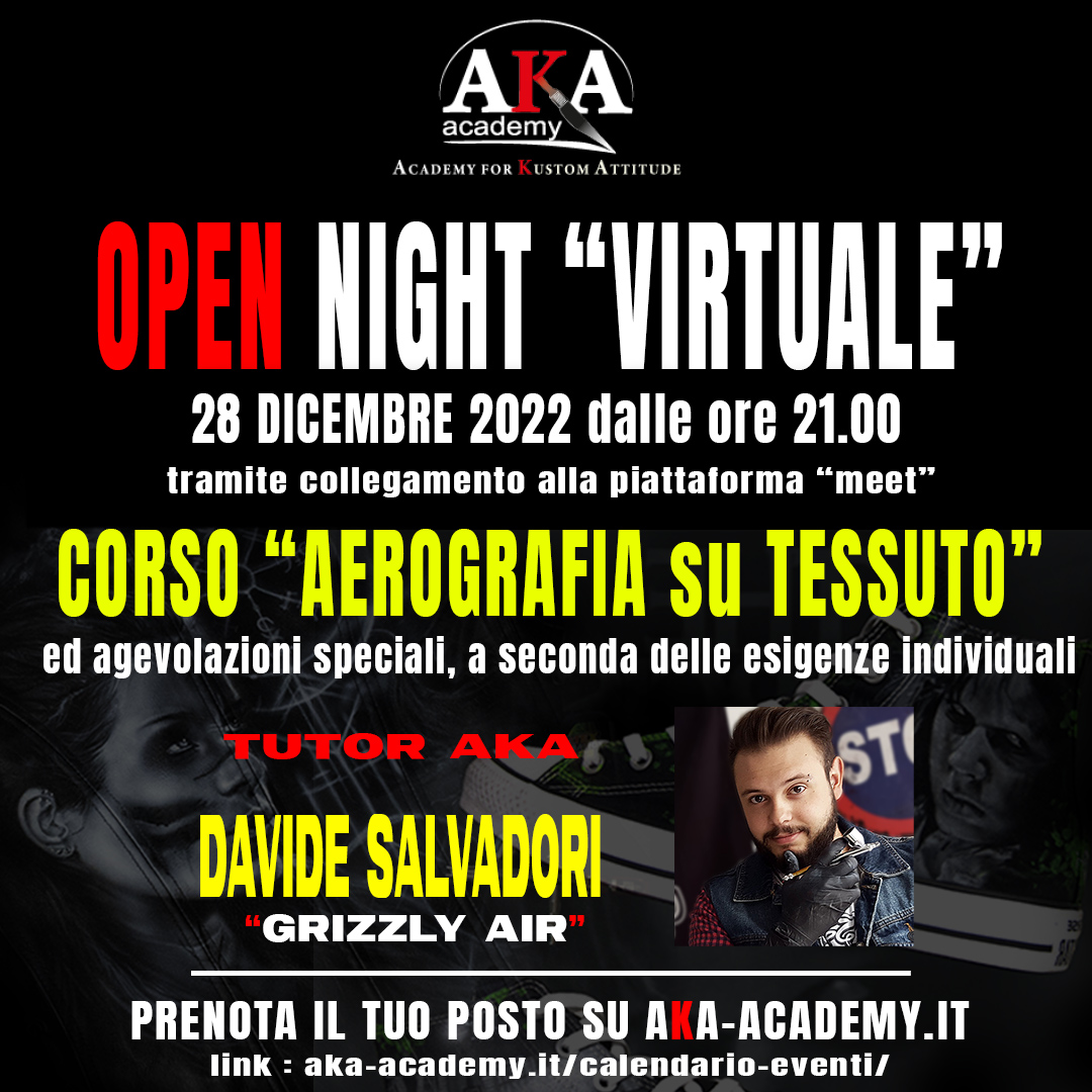 Al fine di agevolare tutti gli iscritti del nostro portale, Aka Academy organizza un incontro “on line” per far conoscere il Corso di Aerografia su Tessuto, tramite video-conferenza.