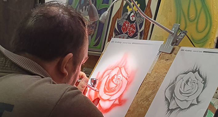 Lorenzo Dossena (Dox) e Davide Salvadori (Grizzly Airbrush) sono due Tutors con una Passione in comune …. l’Aerografia … ed insieme hanno tenuto il Corso 2.0 in Accademia La classe, composta da quattro allievi, due dei quali già …