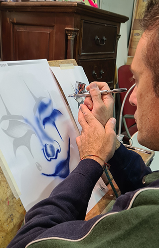 Dopo la nostra consueta colazione insieme, hanno iniziato a prendere confidenza con l’aerografo ed a disegnare le prime figure a mano libera.